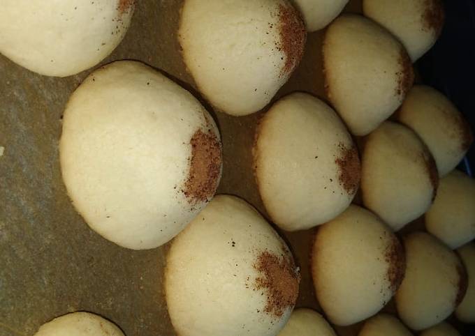 - Laisser la pâte reposer 15mn puis former des boules de 35g environ façonnées en forme de pyramide et mette au four (préchauffé au préalable)avec une température de 160°pendant 25mn une fois cuite sortir du four et mettre de la cannelle au dessus..